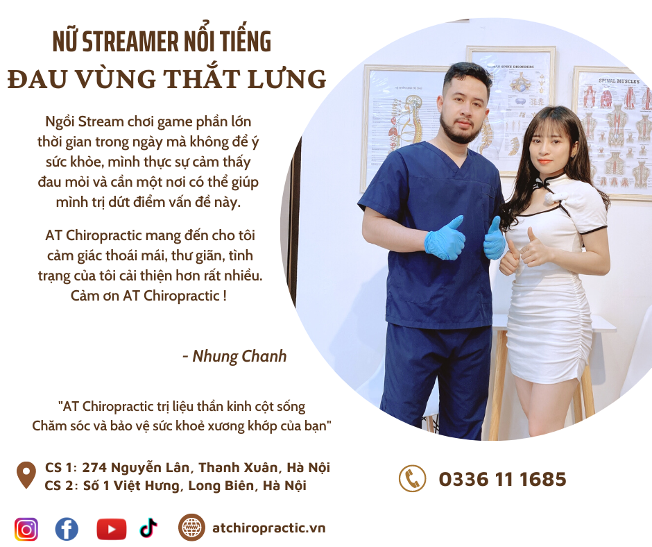 Sau quá trình điều trị, chị Nhung Chanh chia sẻ: “ AT Chiropractic mang đến cho tôi cảm giác thoải mái, thư giãn, tình trạng của tôi cải thiện hơn rất nhiều.”