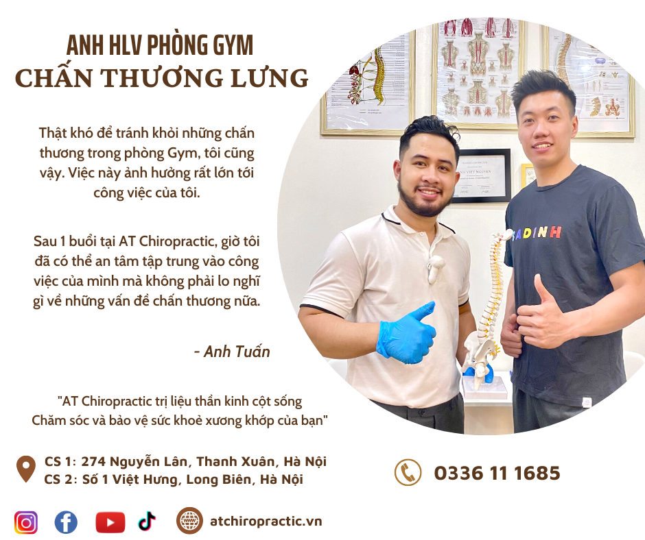 Anh Tuấn - huấn luyện viên phòng gym chia sẻ: “Thật khó để tránh khỏi những chấn thương trong phòng Gym, tôi cũng vậy. Việc này ảnh hưởng rất lớn tới công việc của tôi. Sau một buổi tại AT Chiropractic, giờ tôi đã có thể an tâm tập trung vào công việc của mình mà không phải lo nghĩ về những vấn đề chấn thương nữa.”